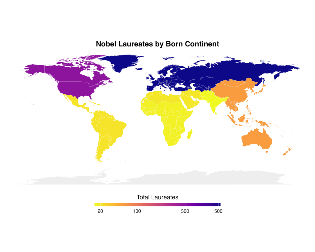 Data Visualization 7: Nobel Laureates by Born Continent